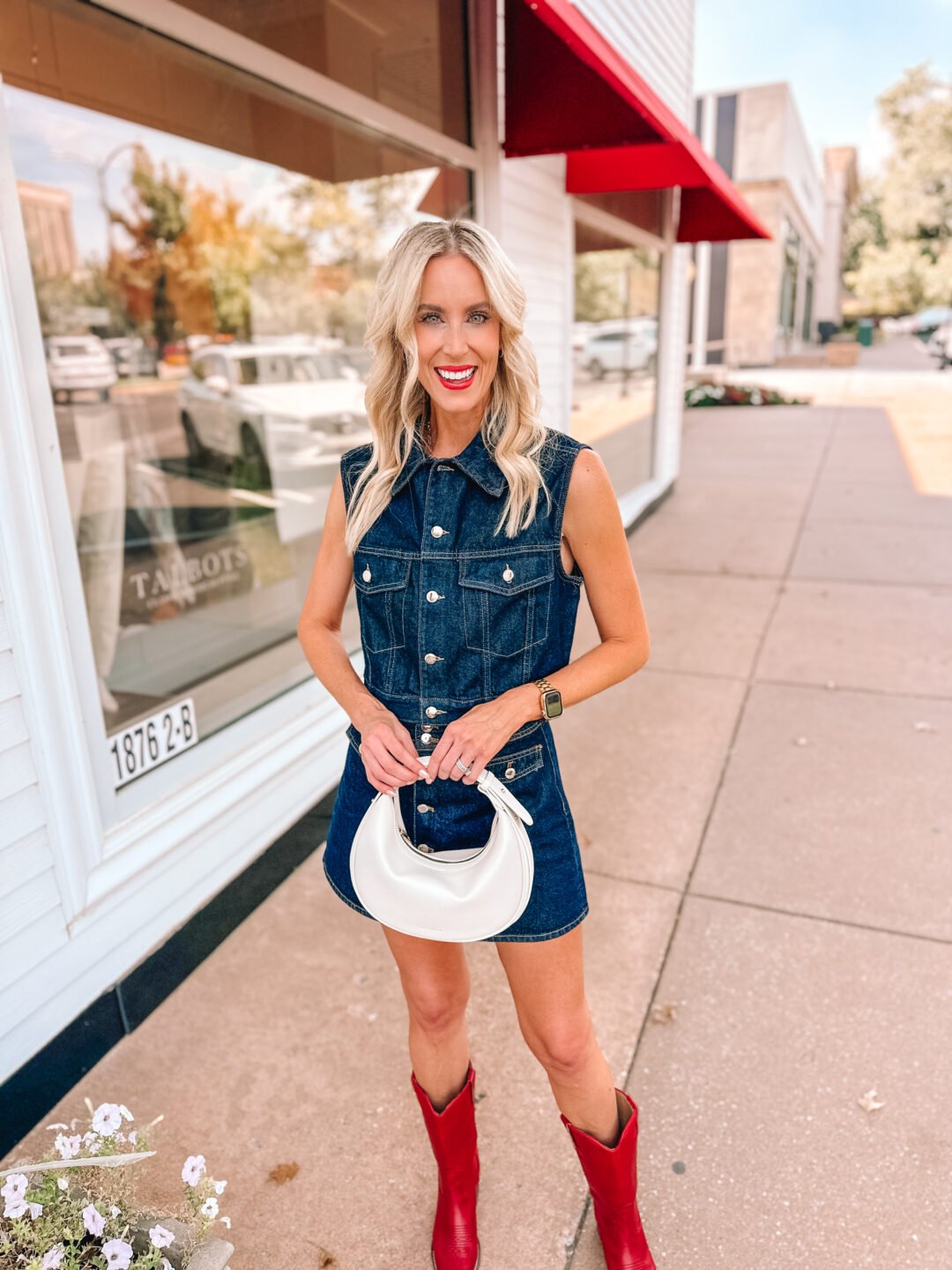 I styled it with a fun red boot for more of a western vibe, but I am also picturing it with a tall brown boot and a oversized blazer or barn jacket to transition it more towards fall. It will be so chic that way!!