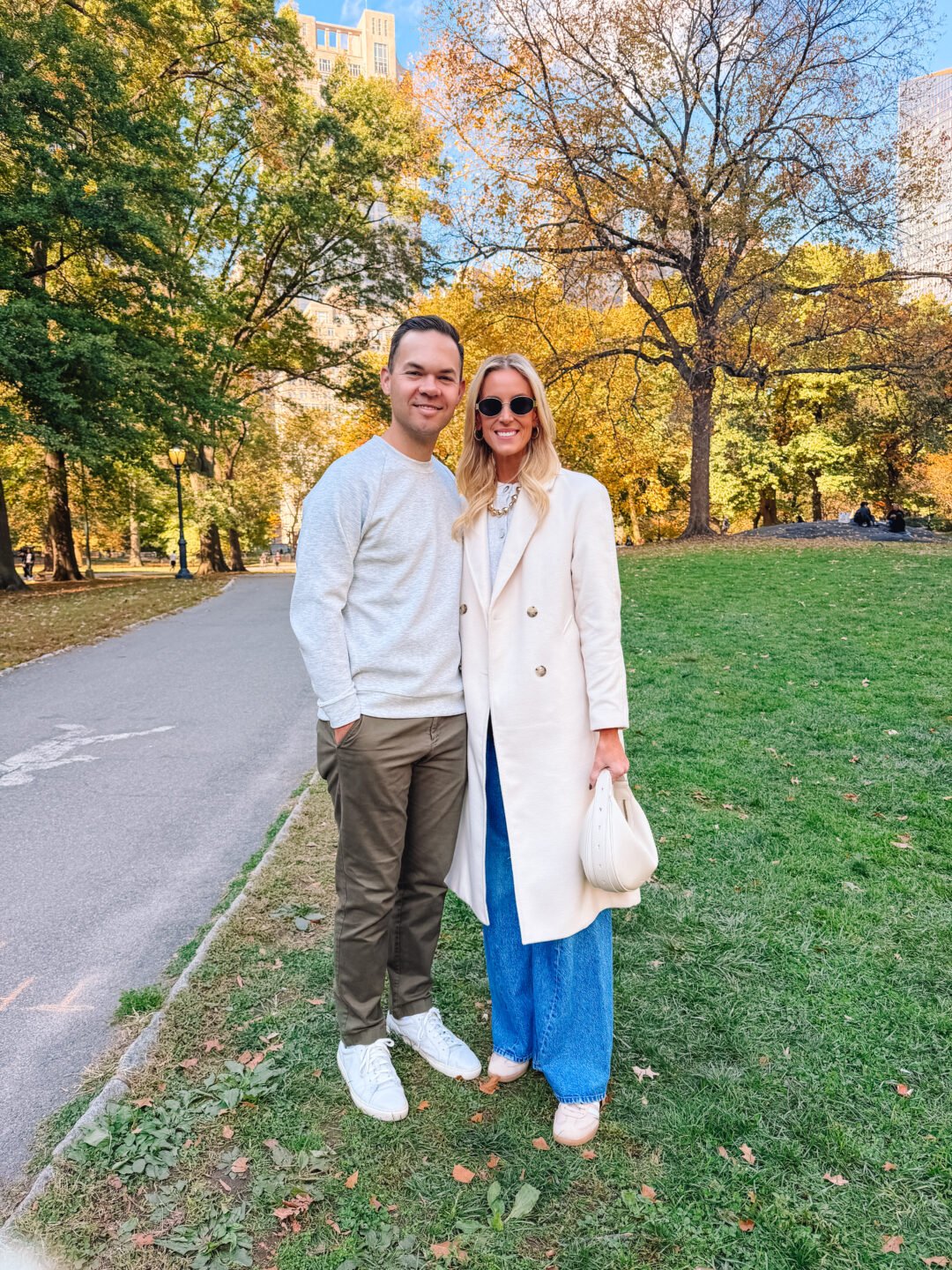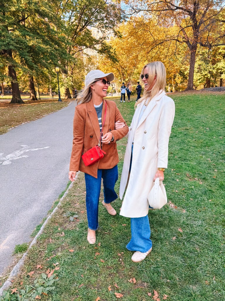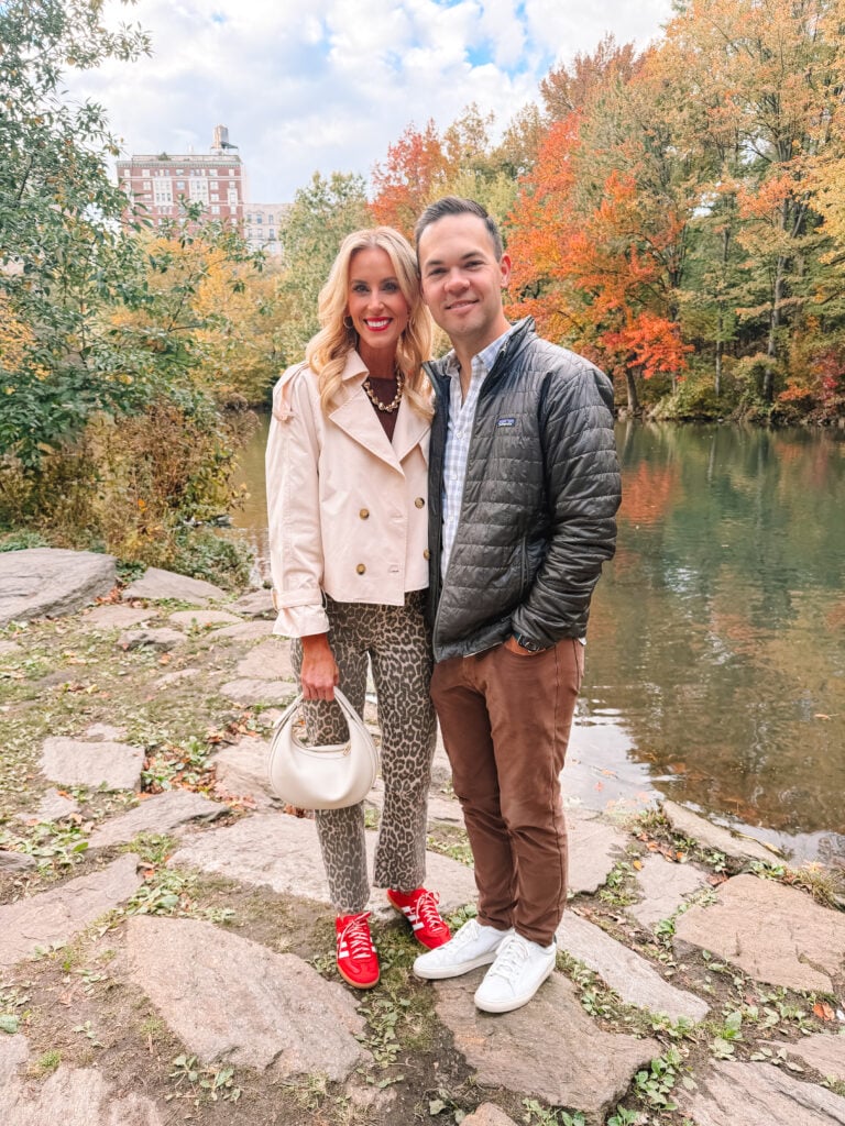 On Friday I wore my favorite leopard jeans with my Amazon cropped trench during the day while we explored Central Park on ebikes and just took in the gorgeous fall day. That evening we took a river cruise, so I swapped to a heavier coat. My exact one is old, but I am ;inking similar options.