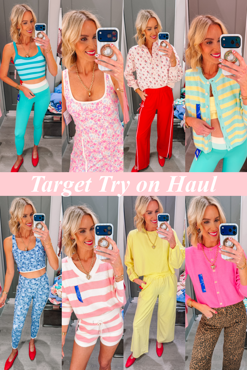 I’m late to getting this to the blog, but I have an amazing Target spring activewear try on for you!! I shared it on Instagram here, and it has been a favorite with all of us!! The colors are just so fun. Everything mixes and matches together so well. I would say everything is true to size except the cardigan (show in both bright pink and stripe below) runs a little big in my opinion. The floral dress is also on the short side. I am going to link everything in the widget below for you!!
